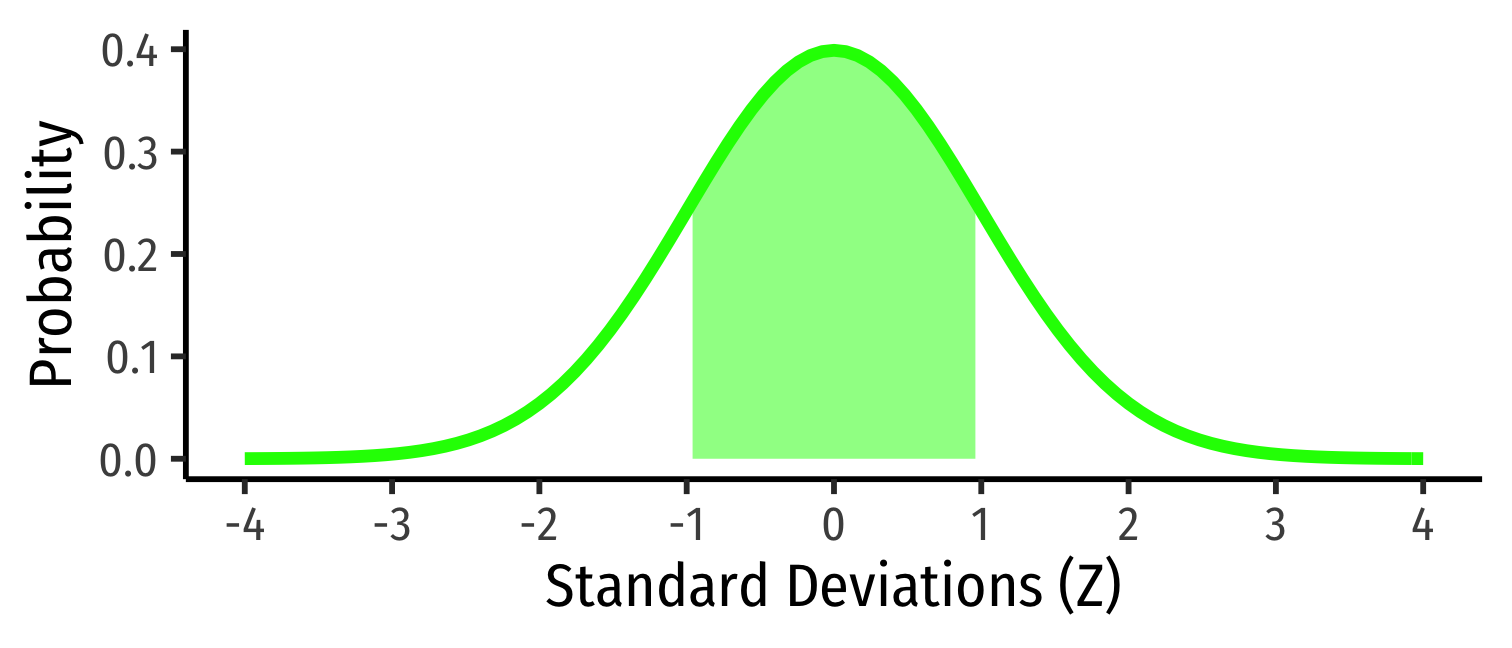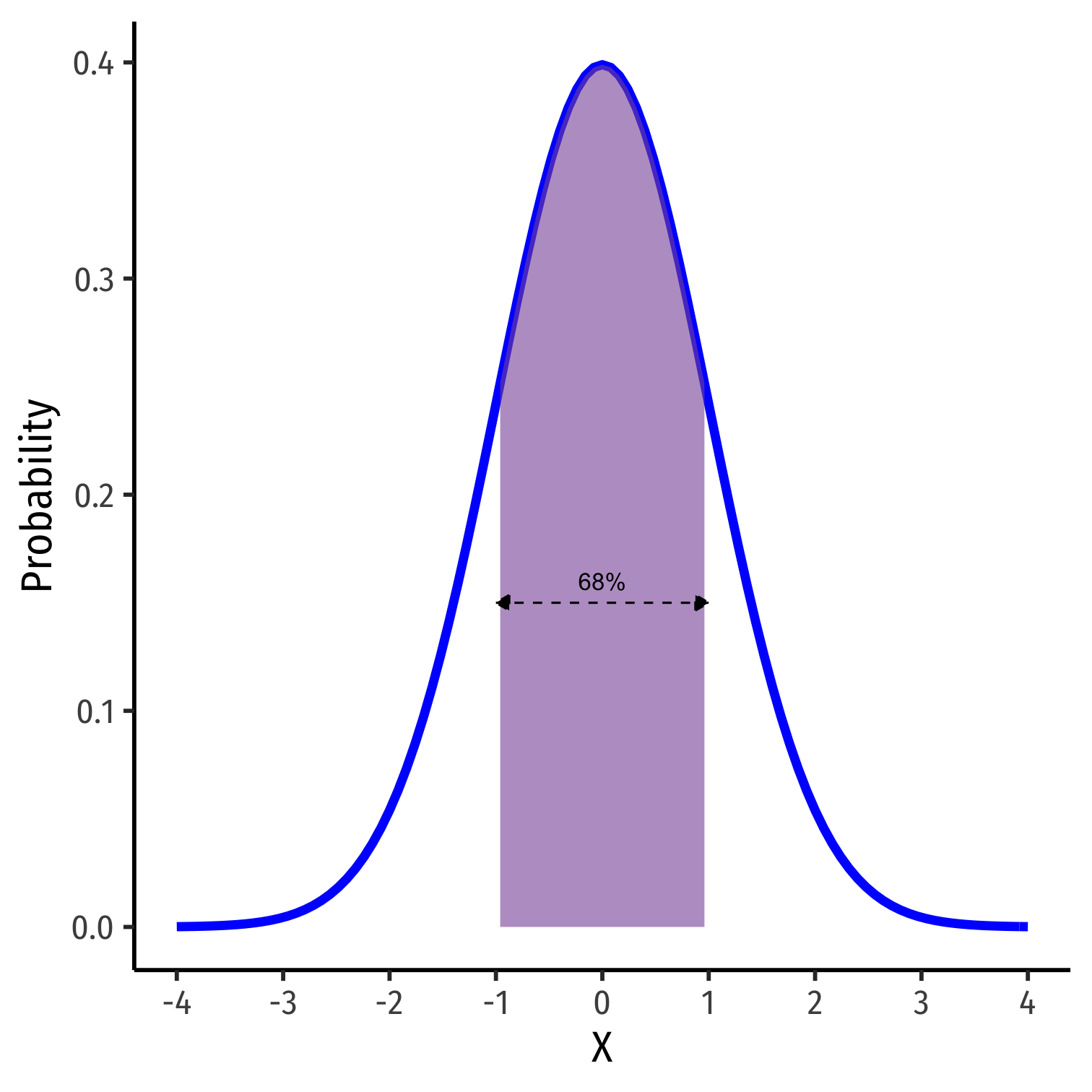 P(μ−1σ≤X≤μ+1σ)≈ 68%