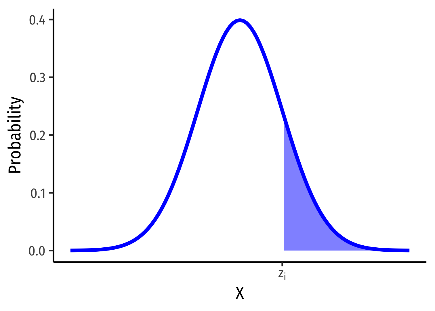 P(Z≥zi)=1−Φ(zi)⏟cdf of zi