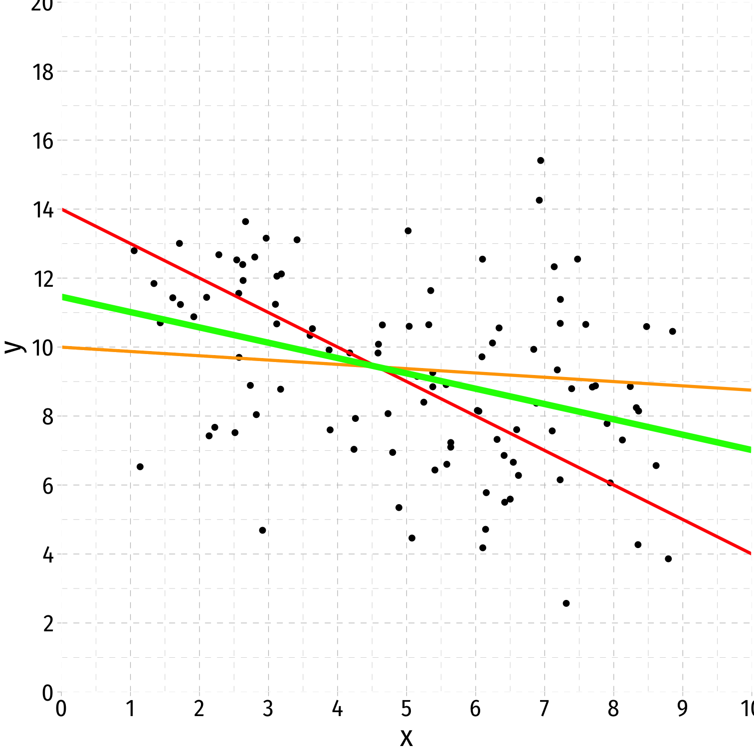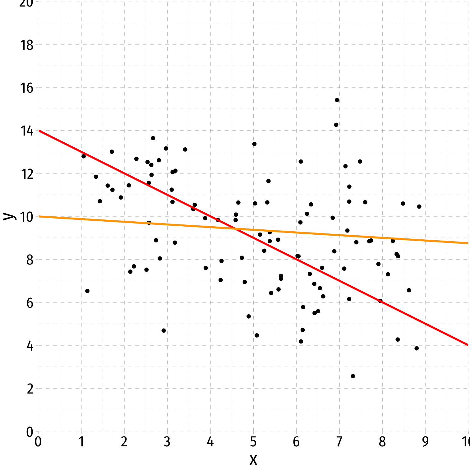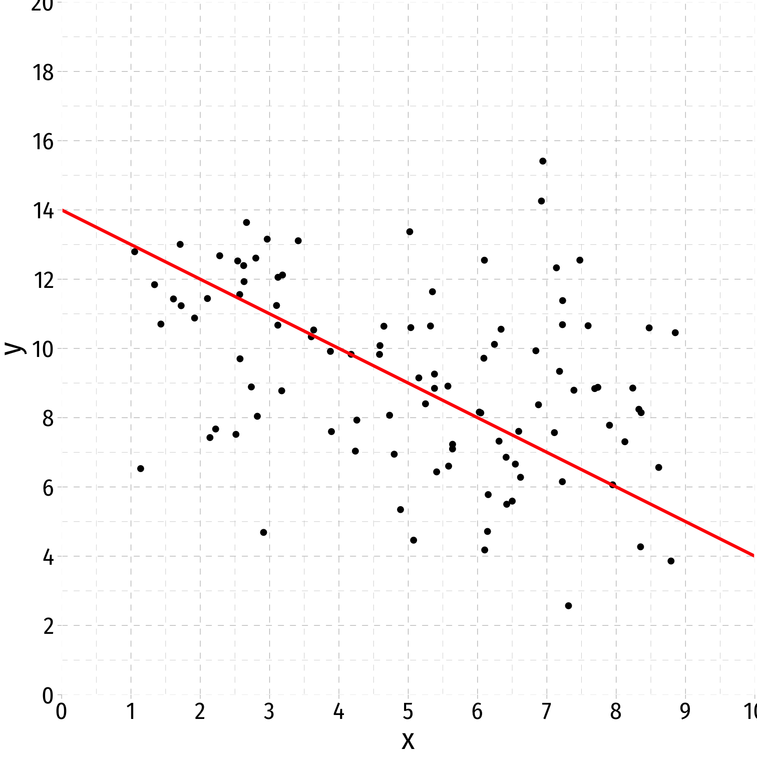 \(\text{slope}=\frac{\Delta Y}{\Delta X}\): for a 1-unit change in \(X\), how many units will this cause \(Y\) to change?